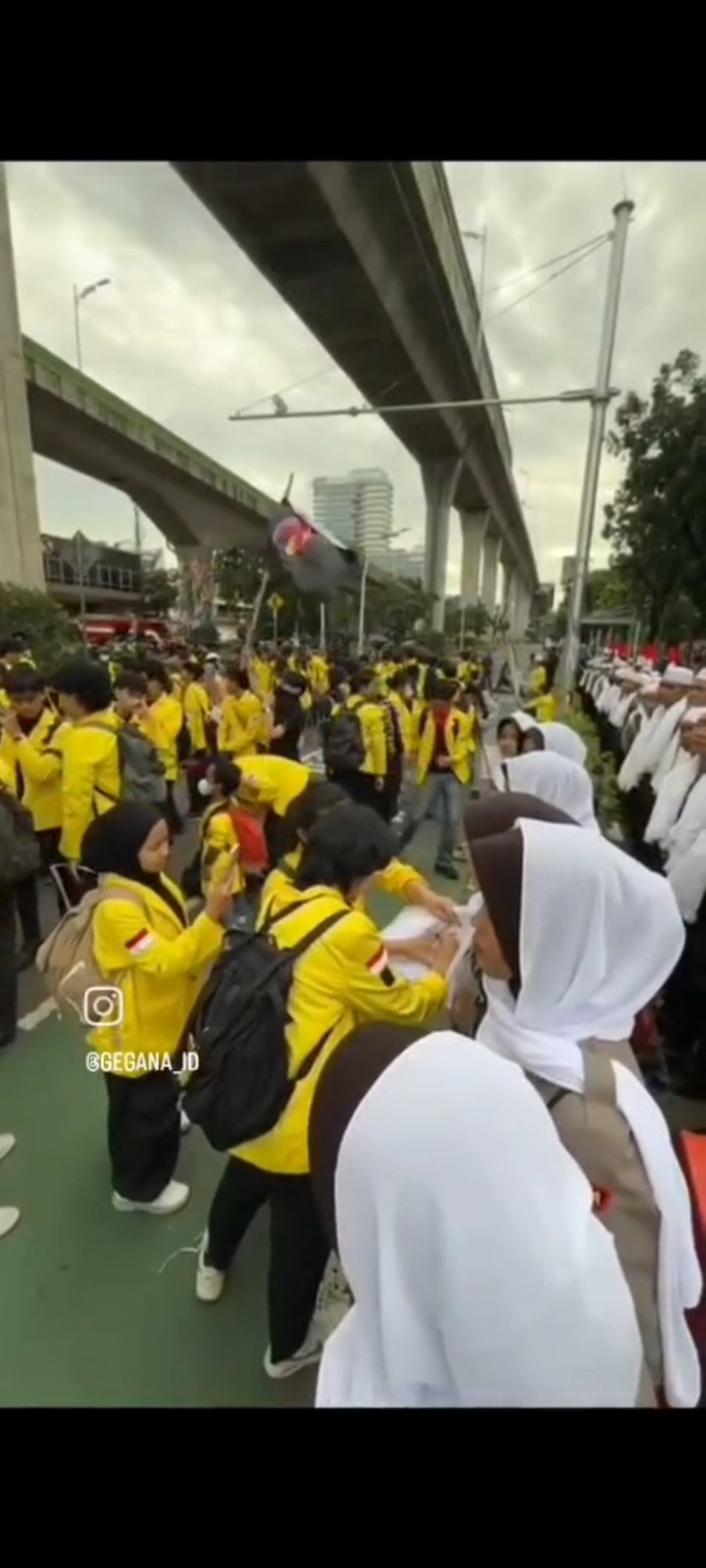 Dalam sebuah video yang beredar, terlihat seorang mahasiswi berjaket kuning mengambil kain penutup kepala dari salah satu personel negosiator Polwan. Mahasiswi tersebut kemudian menuliskan sebuah tulisan yang kurang pantas pada kain putih itu, lalu tampak melakukan dokumentasi dengan memegang kain yang sudah bertuliskan kata tersebut.