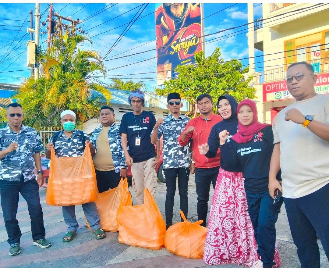 Dalam semangat berbagi bulan suci Ramadan, Dewan Perwakilan Netizen (DPN) bersama BAPERA menggelar kegiatan sosial membagikan takjil di kawasan Bundaran Hulandalo Indah (Bundaran HI), Kota Gorontalo, Sabtu sore.