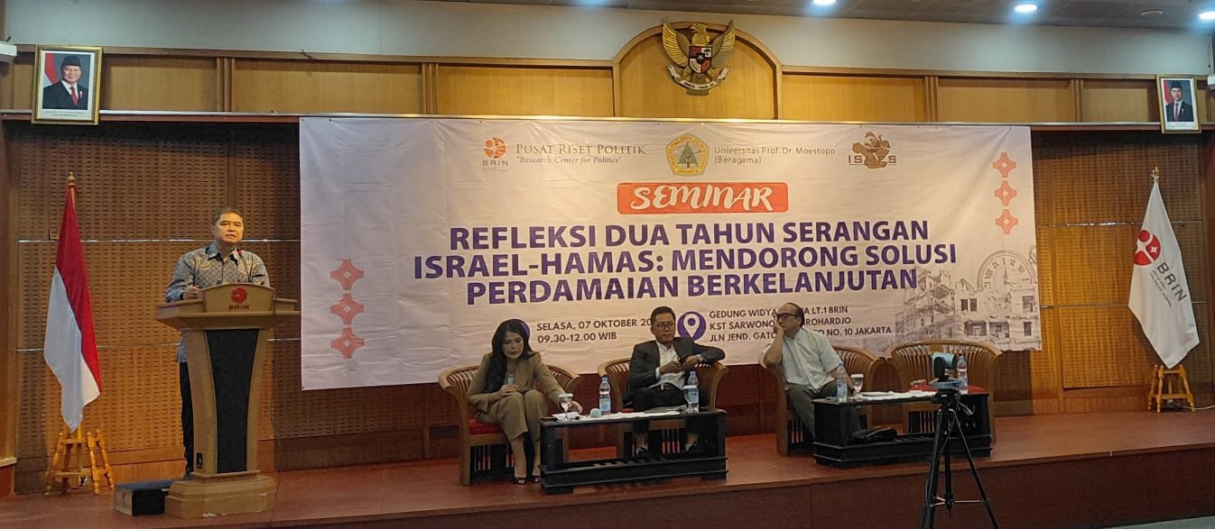 Hal ini disampaikan oleh dosen Magister Ilmu Politik, Fakultas Ilmu Sosial dan Ilmu Politik, Universitas Muhammadiyah Jakarta (UMJ), Dr. Asep Setiawan, saat menjadi salah satu pemateri di seminar bertajuk “Refleksi Dua Tahun Serangan Israel-Hamas: Membangun Solusi Perdamaian Berkelanjutan” di Pusat Riset Politik, Badan Riset dan Inovasi Nasional (BRIN), Jakarta, pada Selasa (7/10).