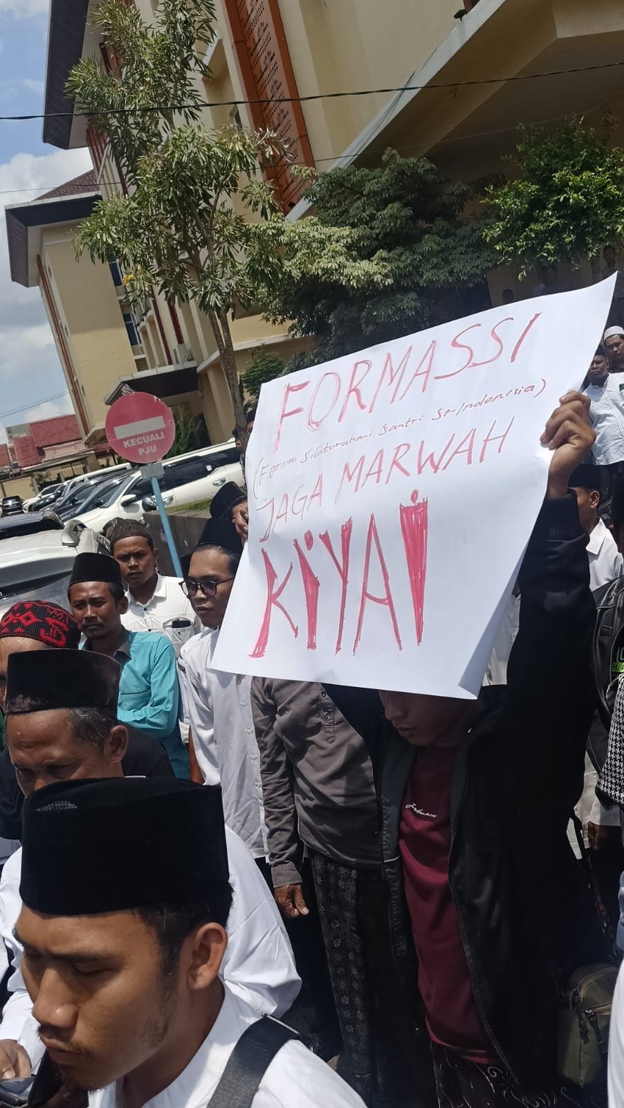 Koordinator Lapangan (Korlap) Aksi damai Kiyai Haji Ahmad Maksum Abror menyampaikan kedatangannya bukan untuk mendemo Polda, karena Pihaknya selalu berkoordinasi dengan Kepolisian untuk menjaga ketertiban dan keamanan. Beliau juga berharap Aspirasi Para pengasuh Pondok Pesantren, Para Kiyai, Para Gawaghis, Para Alumni dapat tersampaikan dan terealisasi ke Pihak Kapolda dan dapat ditindaklanjuti Hingga ke Kapolri.