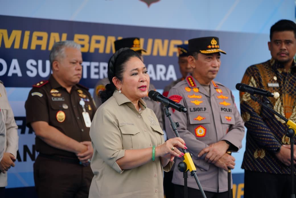 SUMUT – swarabhayangkara.id  – Ketua Komisi IV DPR, Siti Hediati Hariyadi atau Titek Soeharto menghadiri pelepasan bantuan kemanusiaan Polri sebanyak 22 kontainer untuk didistribusikan kepada korban bencana alam di Aceh, Sumatra Utara, dan Sumatra Barat.