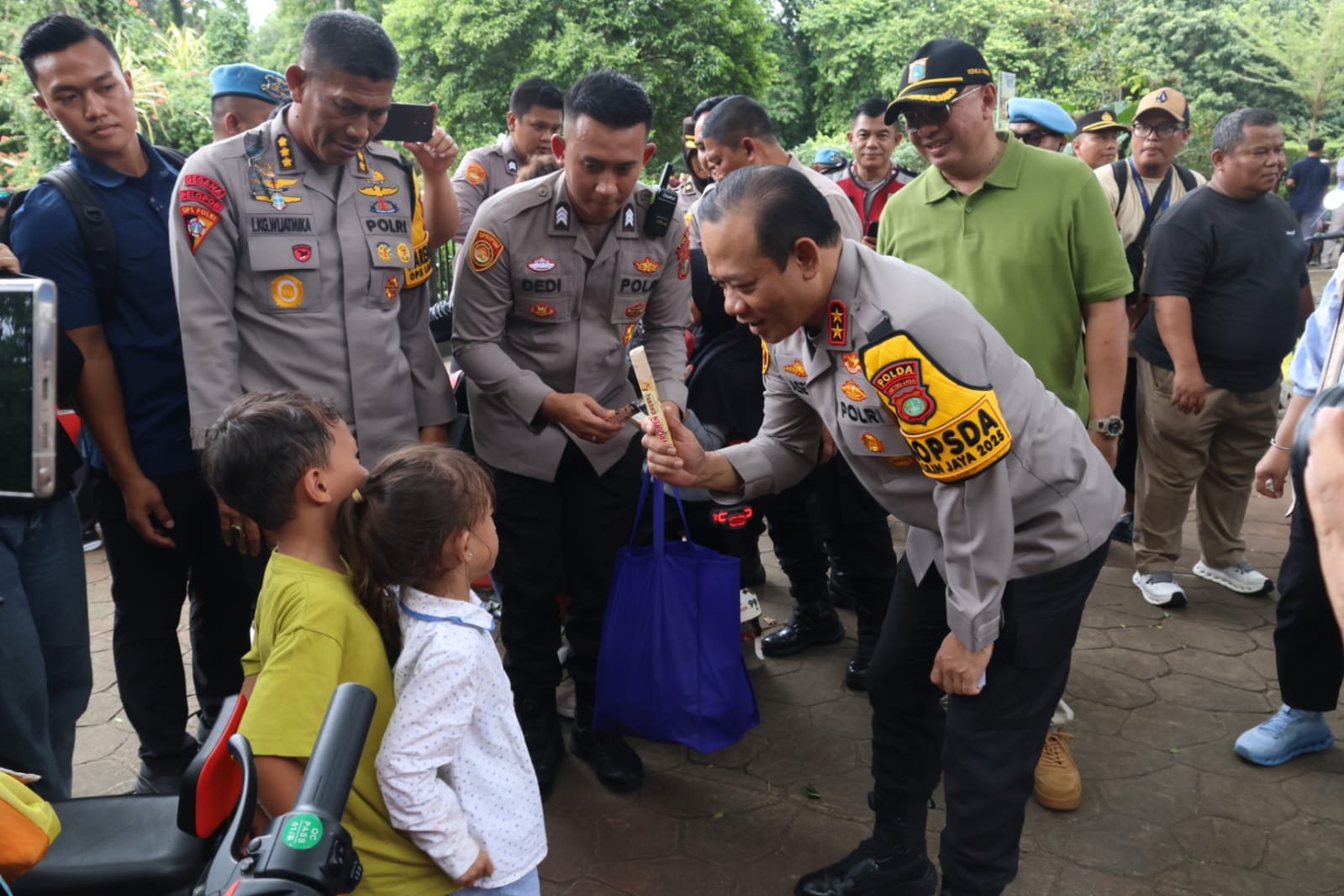 Dalam peninjauan tersebut, Kapolda juga berkeliling kawasan Ragunan, termasuk menyambangi beberapa kandang satwa. Ia tampak menyapa dan berinteraksi langsung dengan masyarakat, khususnya anak-anak. Momen humanis terlihat saat Kapolda membagikan cokelat dan susu kotak kepada anak-anak yang tengah berlibur bersama keluarganya, serta memberikan kartu uang elektronik kepada para orang tua.