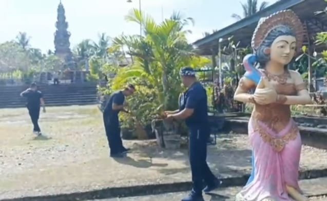 Kegiatan yang melibatkan personel Polsek Wonosari bersama warga setempat ini difokuskan pada pembersihan area sekitar tempat ibadah, termasuk halaman dan lingkungan sekitar pura.