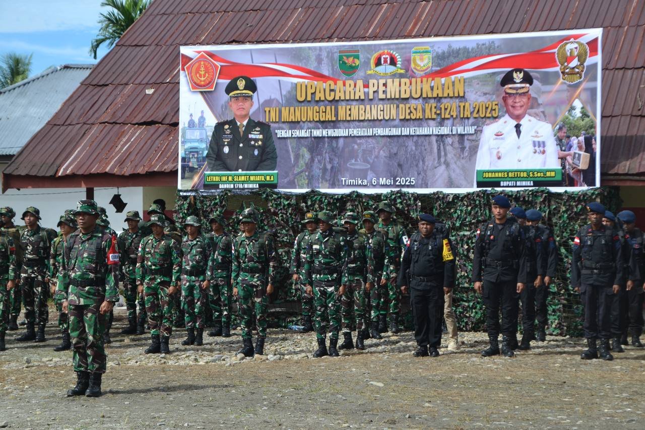 Swarabhayarangkara. Id- Timika – Komando Distrik Militer (Kodim) 1710/Mimika menggelar kegiatan TNI Manunggal Membangun Desa (TMMD) Reguler ke-124 yang berlangsung di Kampung Pigapu, Distrik Iwaka, Kabupaten Mimika, Papua Tengah, Selasa (6/5/2025).
