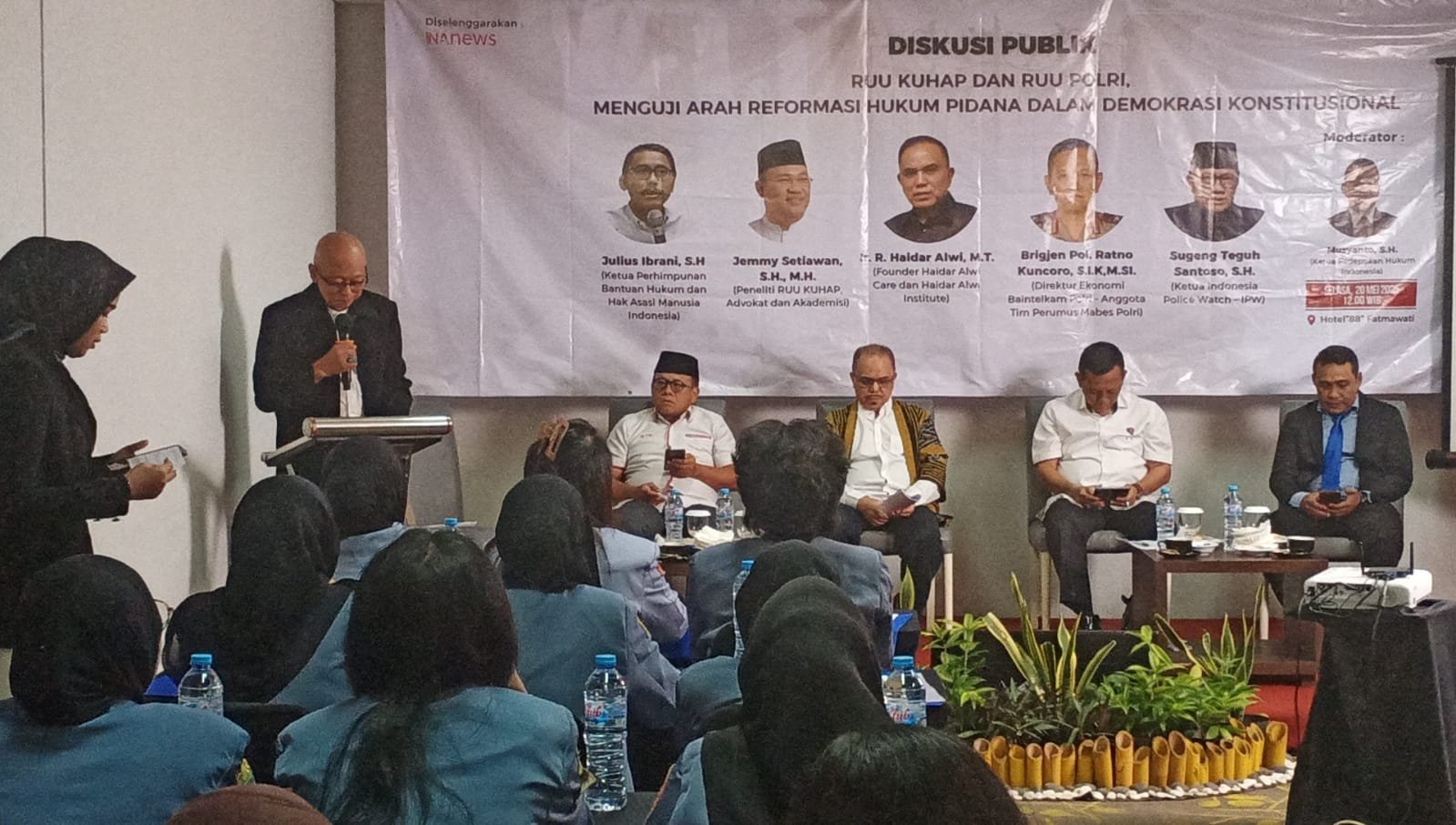 Ketua Padepokan Hukum Indonesia, Musyanto, yang juga bertindak sebagai moderator, menyampaikan bahwa proses reformasi hukum pidana harus berpijak pada nilai-nilai demokrasi dan hak asasi manusia.