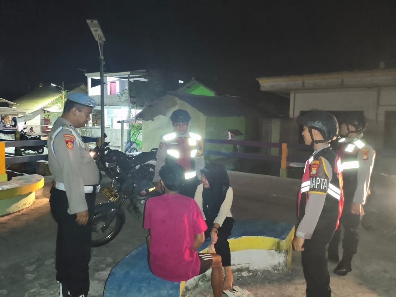 Kegiatan patroli serentak tersebut menyasar sejumlah titik rawan, mulai dari dermaga penyebrangan, kawasan permukiman, area minim pencahayaan, hingga lokasi usaha masyarakat yang masih beroperasi pada malam hari. Petugas turun langsung melakukan pemantauan situasi, berdialog dengan warga, dan mengingatkan pentingnya kewaspadaan terhadap ancaman gangguan keamanan.
