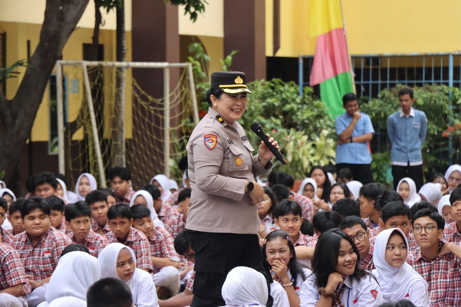 Kompol Leny mengingatkan para siswa agar fokus pada pendidikan, menjauhi tawuran, serta tidak terjerumus pada narkoba.
