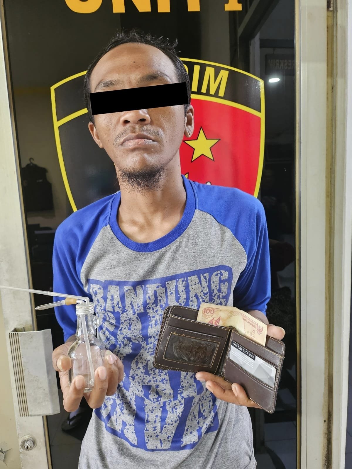 Pelaku ditangkap di sebuah kontrakan di Jalan Gedung Ijo, RT 04 RW 02, Kelurahan Kebon Melati, Tanah Abang, sekitar pukul 12.00 WIB. Dalam penangkapan itu, polisi turut menyita barang bukti berupa uang tunai Rp 100.000 dan satu buah bong atau alat isap sabu.
