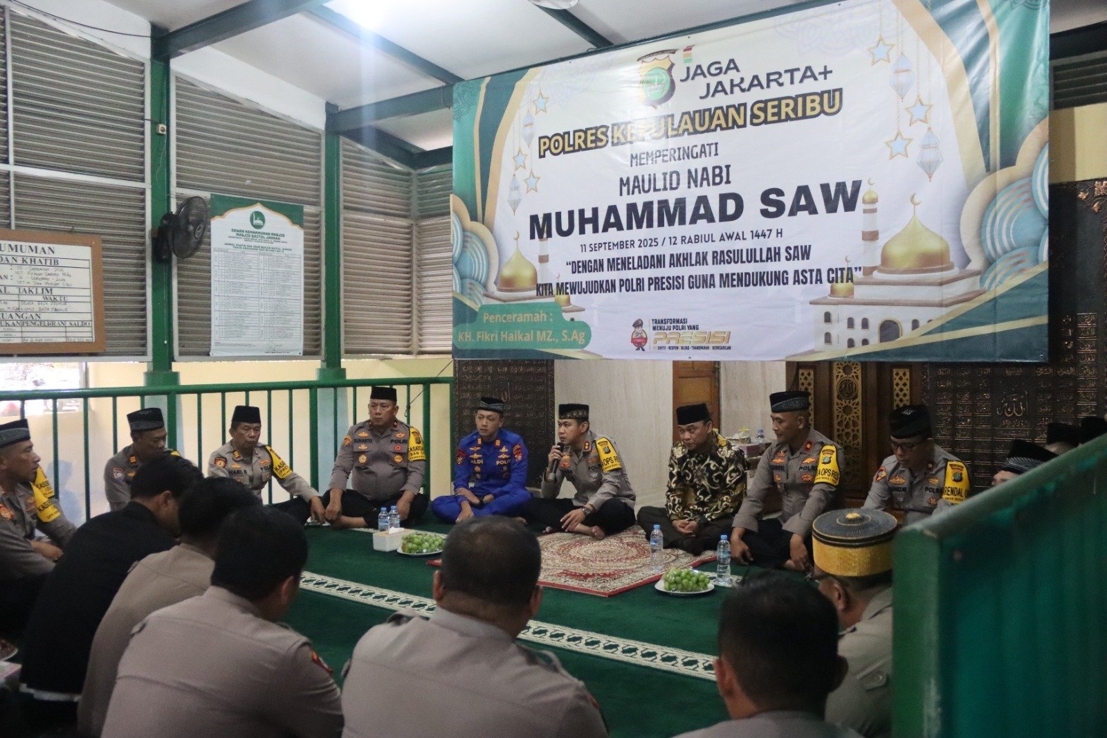 Kegiatan yang mengusung tema “Dengan Meneladani Akhlak Rasulullah SAW Kita Mewujudkan Polri Presisi Guna Mendukung Asta Cita” menghadirkan penceramah KH. Fikri Haikal MZ, S.Ag. Beliau menyampaikan pentingnya meneladani akhlak Nabi Muhammad SAW dalam kehidupan sehari-hari, baik dalam menjalankan tugas maupun bermasyarakat.