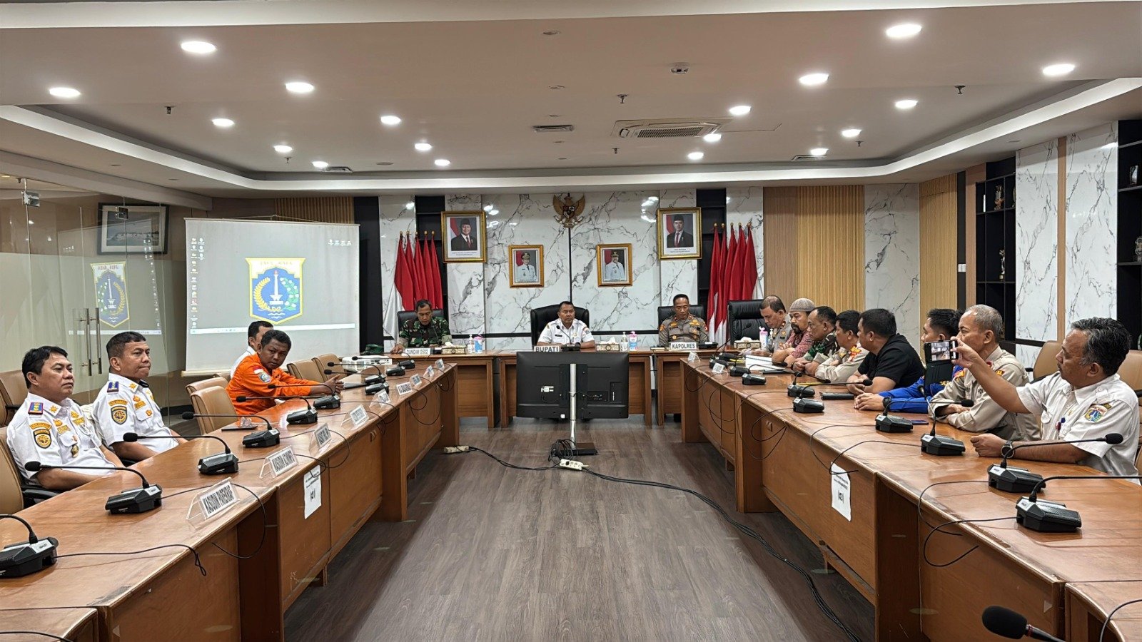 Rakor dipimpin oleh Wakil Bupati Kabupaten Administrasi Kepulauan Seribu H. Aceng Zaeni, S.Ag., M.H., didampingi Kabbag Ren Polres Kepulauan Seribu Kompol Rahmat Suryaman, S.E., M.M., serta Pabung Kodim 0502/Jakarta Utara Mayor Czi Yuhana. Kegiatan ini juga dihadiri oleh pejabat utama Polres Kepulauan Seribu, unsur TNI, serta berbagai instansi terkait seperti Satpol PP, Dinas Perhubungan, KSOP, Basarnas, Sudin Kesehatan, Sudin Parekraf, Kominfo, hingga BMKG Kepulauan Seribu.