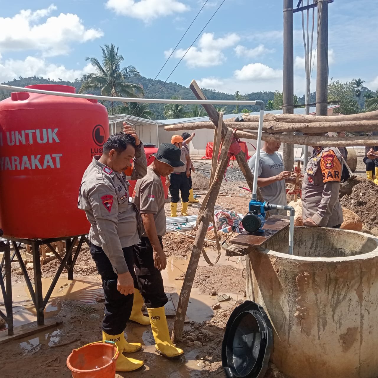 “Polri berupaya hadir tidak hanya dalam aspek keamanan, tetapi juga membantu pemenuhan kebutuhan dasar masyarakat, salah satunya melalui pembangunan sumur air bersih di lokasi hunian sementara. Ini adalah bentuk kepedulian dan tanggung jawab kemanusiaan Polri,” ujar Kombes Pol Erdi A. Chaniago.