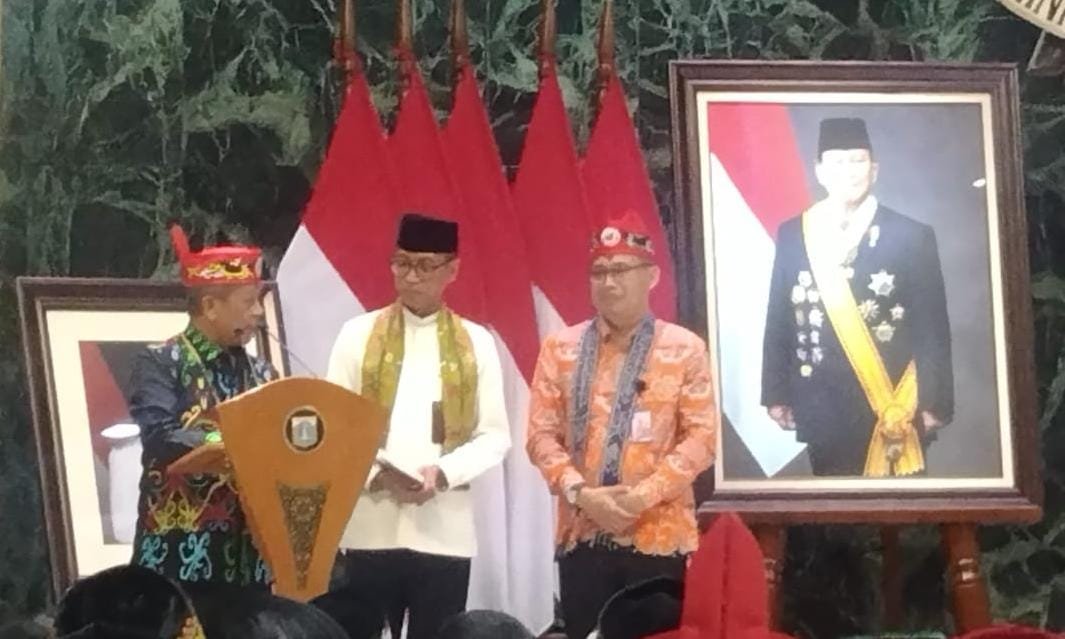 SwaraBhayangkara.id – Jakarta Pusat – Jumat, 30 Januari 2026 – Sebanyak 17 judul buku kamus Dayak resmi diserahkan ke Perpustakaan Nasional sebagai bagian dari acara pelantikan Dewan Pimpinan Ikatan Cendikiawan Dayak Nasional (ICDN) Provinsi DKI Jakarta periode 2026-2031 yang berlangsung di Balai Agung Balai Kota Jakarta, Jumat (30/1). Karya-karya yang menjadi wujud pelestarian bahasa dan budaya etnis Dayak ini diserahkan oleh Ketua Umum ICDN Dr. Ir. Willy Midel Yoseph, M.M kepada Kepala Perpustakaan Nasional Prof. E. Aminudin Aziz, MA, Ph.D.
