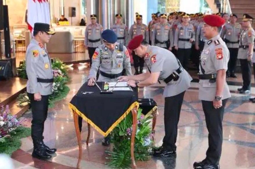Kapolda Metro Jaya, Irjen Pol Asep Edi Suheri memimpin serahterima jabatan (sertijab) tiga pejabat utama (PJU) Polda Metro Jaya di lobby Gedung Promoter Polda Metro Jaya.